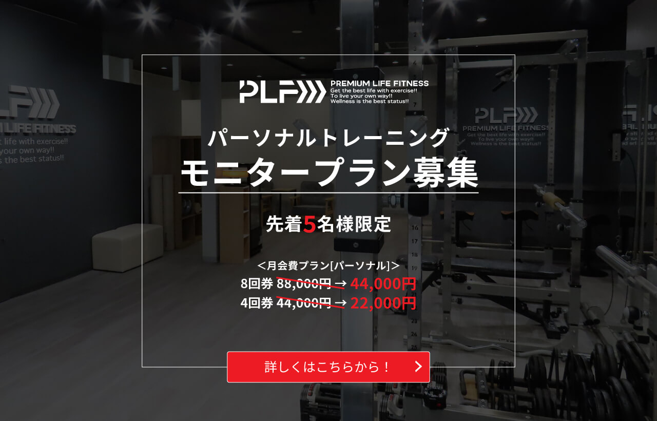 どんなにすばらしい設備のある施設で、どんなに良いメソッドがあったとしても、トレーナーとの信頼関係がなければなかなか結果を出しにくく、また継続して行う事が嫌になってしまいます。PLFでは『指導』は『接客』と考え、一方通行ではなくコミュニケーションをしっかり取りながらトレーニングを行っていきます。