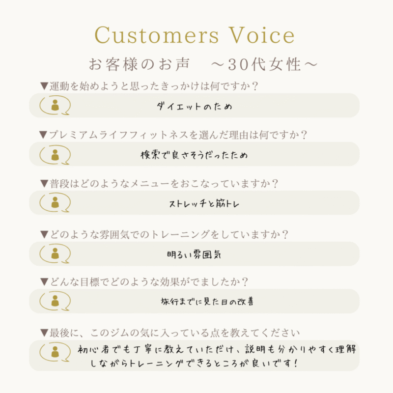 ▼プレミアムライフフィットネスを選んだ理由は何ですか?
